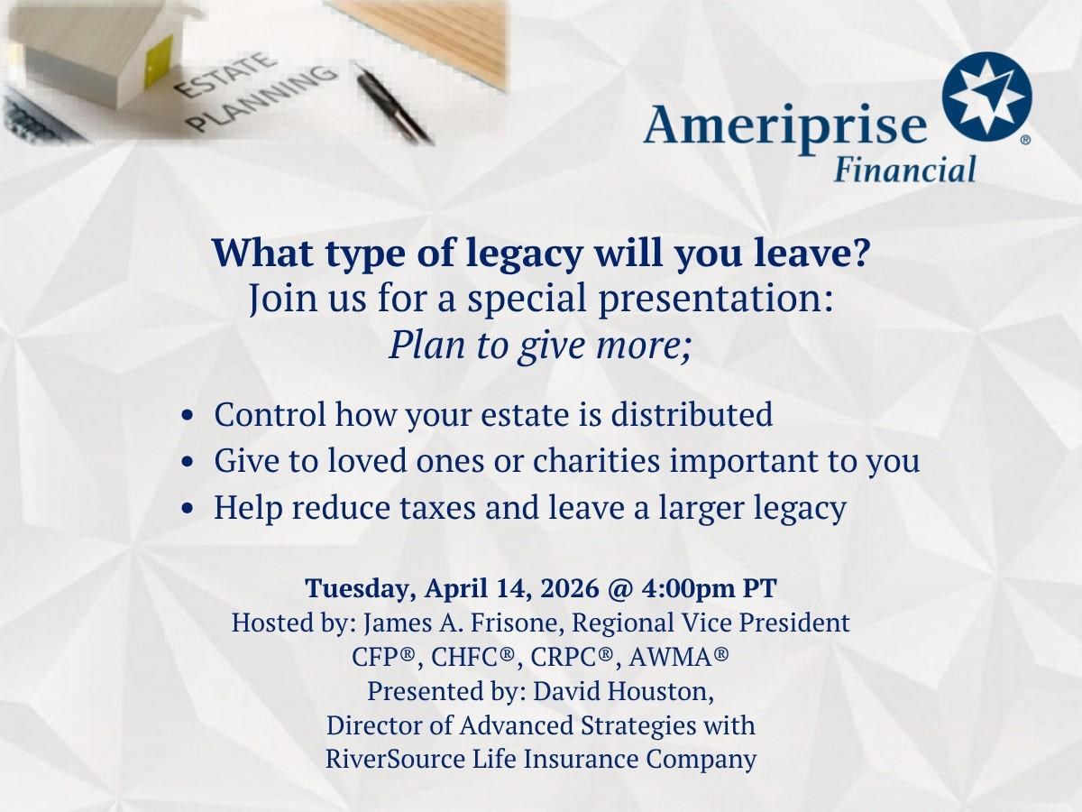 Ameriprise Financial, Inc. and its affiliates do not offer tax or legal advice. Consumers should consult with their tax advisor or attorney regarding their specific situation.