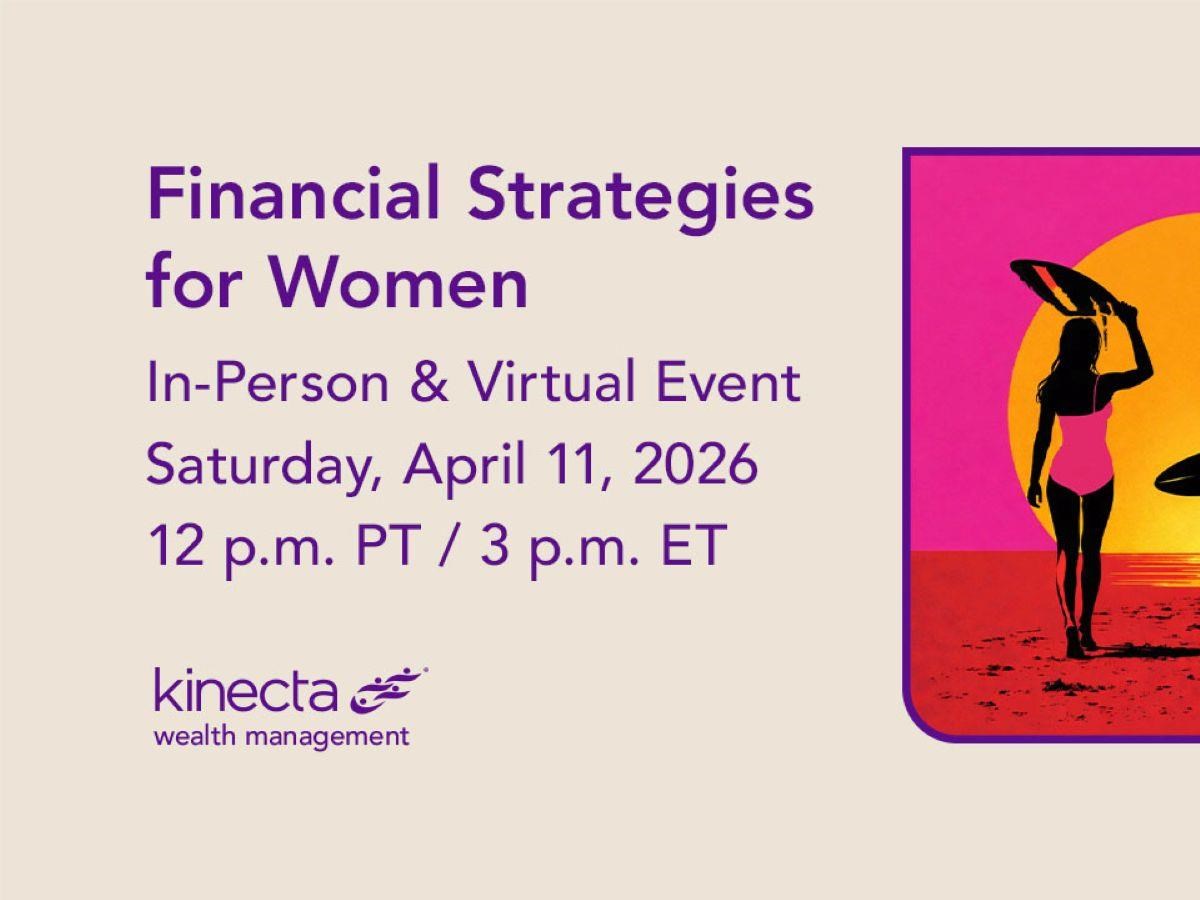 Financial Strategies for Women Date: Saturday, April 11, 2026 Time: 12:00 PM - 2:00 PM PDT Location: Kinecta, 2100 Park Place, El Segundo, CA 90245 Join this event online Presented By: Casi DiLeva, Financial Advisor, Wealth Advisor - Kinecta Wealth Management Hosted By: Kinecta Wealth Management Celebrating Strength, Connection & Financial Confidence Join Casi DiLeva, Financial Advisor, Donna McNeely, President, Sami Harper, Financial Advisor, and Whitney O'Quinn, Financial Planning Manager, from Kinecta Wealth Management, for an uplifting afternoon. We’ll cover areas that can impact women’s financial lives and offer some strategies to help. We will discuss: • The income gap women often face• How to plan for a longer lifespan• Managing multiple roles and responsibilities at home, work and in the community• How to approach life changes and unexpected events Register for the in-person event - Arrive by 11:30 p.m. for a complimentary lunch, networking and a warm community environment. Register for the virtual webinar - Join us virtually from the comfort of your own home To reserve a spot: call us at 310.643.2454 or email us at info@kinectawealth.org RSVP Online Event registration Date: Time: Enter your information below to RSVP for this event. We will contact you via phone or email to confirm your registration. First Name Last Name Email Phone (optional) Comments/Questions/Special Needs for the event (optional) Ameriprise Financial understands that privacy and security are important to you. We will only use the information to send offers we believe are relevant to you and, if you become a client, to send you information about your accounts. Visit the Email Preferences page to change your email choices. Submit Your RSVP was not sent. Return to form Thank you for your interest in this Ameriprise Financial event. We will contact you shortly to confirm your registration. Please note: Your registration is not complete until you have received final confirmation. Share Email Text message Facebook LinkedIn X Add to Calendar Google Calendar Yahoo! Calendar Share Email Text message Facebook LinkedIn X Add to Calendar Google Calendar Yahoo! Calendar This is an informational workshop. There is no cost or obligation. Ameriprise Financial Planning Services are optional, offered separately, and priced according to the complexity of your case and your financial advisor’s practice fee schedule. Your fees and financial advisor may be subject to change. We have a partnership with Ameriprise Financial Services to provide financial planning services and solutions to our clients. We are not an investment client of Ameriprise, but wehave a revenue sharing relationship with them that creates a conflict of interest. Details on how we work together can be found on ameriprise.com/secdisclosure. This is an informational seminar. There is no cost or obligation. Ameriprise Financial Planning Services are optional, offered separately, and priced according to the complexity of your case and your financial advisor’s practice fee schedule. Your fees and financial advisor may be subject to change. Kinecta Wealth Management is a financial advisory practice of Ameriprise Financial Services, LLC. Ameriprise Financial and Kinecta Federal Credit Union are not affiliated.