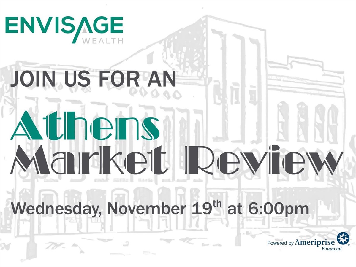 Athens Market Review Date: Wednesday, November 19, 2025 Time: 6:00 PM - 8:00 PM EST Location: Stuart's Opera House, 52 Public Sq., Nelsonville, OH 45764 Hosted By: Envisage Wealth Join the Envisage Wealth team for our 2025 Athens Market Review at Stuart’s Opera House. Chief Investment Officer, Alexander Reed, will be sharing market insights regarding navigating economic crossroads and the AI frontier. We can’t wait to see you there! To reserve a spot: call us at 740.594.0300 or email us at envisagewealth@ampf.com Share Email Text message Facebook LinkedIn X Add to Calendar Google Calendar Yahoo! Calendar This is an informational seminar. There is no cost or obligation. Ameriprise Financial cannot guarantee future financial results. Investment products are not insured by the FDIC, NCUA or any federal agency, are not deposits or obligations of, or guaranteed by any financial institution, and involve investment risks including possible loss of principal and fluctuation in value. Ameriprise Financial cannot guarantee future financial results. Securities offered by Ameriprise Financial Services, LLC. Member FINRA and SIPC. © 2025 Ameriprise Financial, Inc. All rights reserved.