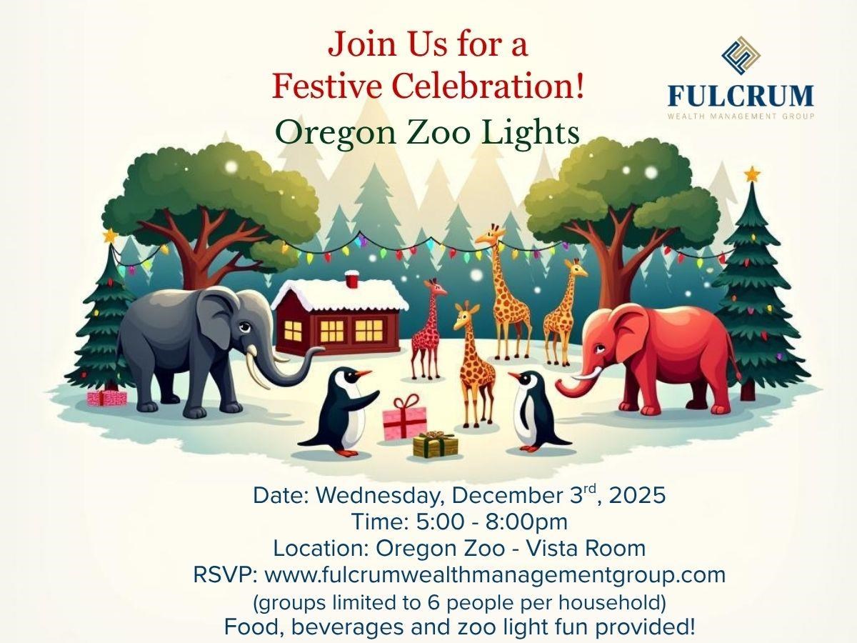 Vancouver & Portland Holiday Party - ZooLights Date: Wednesday, December 3, 2025 Time: 5:00 PM - 8:00 PM PST Location: Oregon Zoo - Vista Room, 4001 SW Canyon Road, Portland, OR 97221 Hosted By: Fulcrum Wealth Management Group, a private wealth advisory practice of Ameriprise Financial Services, LLC Clients and friends, As the holiday season approaches, we want to express our sincere appreciation for your partnership and trust throughout the year. To celebrate and thank you, we’re delighted to invite you and your loved ones to experience the magic of ZooLights! ZooLights dazzles visitors of all ages with wildlife-inspired light displays and a whole lot of seasonal fun. It’s the perfect place to gather, snap photos, and make lasting memories. Whether you’re looking for a festive family outing or a special holiday date night, ZooLights is sure to delight. We will be providing food, beverages, ZooLight access, and an INDOOR space to warm up. More details will be provided after you RSVP. Please RSVP online by Wednesday, November 26th. Parties are limited to 6 people per group. Thank you again for being such an important part of our Fulcrum Family. We hope you’ll join us for an unforgettable holiday celebration! If you have any questions regarding this event, please don’t hesitate to call us at 360.883.2623. We look forward to celebrating the holiday season with you! To reserve a spot: call us at 360.883.2623 or email us at marta.g.benson@ampf.com RSVP Online Event registration Date: Time: Enter your information below to RSVP for this event. We will contact you via phone or email to confirm your registration. First Name Last Name Email Phone (optional) Comments/Questions/Special Needs for the event (optional) Ameriprise Financial understands that privacy and security are important to you. We will only use the information to send offers we believe are relevant to you and, if you become a client, to send you information about your accounts. Visit the Email Preferences page to change your email choices. Submit Your RSVP was not sent. Return to form Thank you for your interest in this Ameriprise Financial event. We will contact you shortly to confirm your registration. Please note: Your registration is not complete until you have received final confirmation. Share Email Text message Facebook LinkedIn X Add to Calendar Google Calendar Yahoo! Calendar Share Email Text message Facebook LinkedIn X Add to Calendar Google Calendar Yahoo! Calendar There is no cost or obligation.
