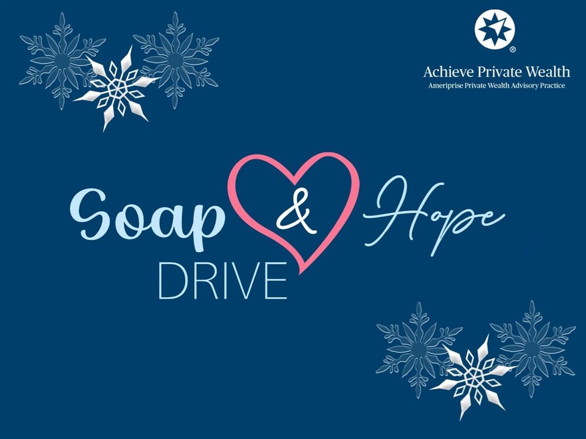 Soap & Hope Hygiene Drive Date: Monday, December 15, 2025 Time: 12:00 AM - 4:30 PM CST Location: Achieve Private Wealth, 1525 E Republic Road, Suite B-115, Springfield, MO 65804 Hosted By: Achieve Private Wealth This season, join us in making a difference by participating in our hygiene products drive event. We will be collecting NEW and UNOPENED hygiene products through December 15, 2025. These donations will help bring hope and dignity to many folks in need this winter! Donations support Least Of These, Inc. Christian County Food Pantry which provides families in need access to healthy food, supplies, and other resources. We are collecting hygiene products for all ages—both men and women, including soaps, toiletries, feminine hygiene and incontinence products, washcloths, and laundry supplies. Donation Deadline: Monday, December 15 Drop Off or Online Deliver to: Achieve Private Wealth, 1525 E Republic Road, Suite B-115, Springfield, MO 65804-6578 For more information: call us at 417.877.0252 or email us at taryn.may@ampf.com Share Email Text message Facebook LinkedIn X Add to Calendar Google Calendar Yahoo! Calendar There is no cost or obligation. We are unable to accept cash or check donations for this event. Achieve Private Wealth, a private wealth advisory practice of Ameriprise Financial Services, LLCThe Compass is a trademark of Ameriprise Financial, Inc. Securities offered by Ameriprise Financial Services, LLC. Member FINRA and SIPC. © 2025 Ameriprise Financial, Inc. All rights reserved. 8313200ACMR0825