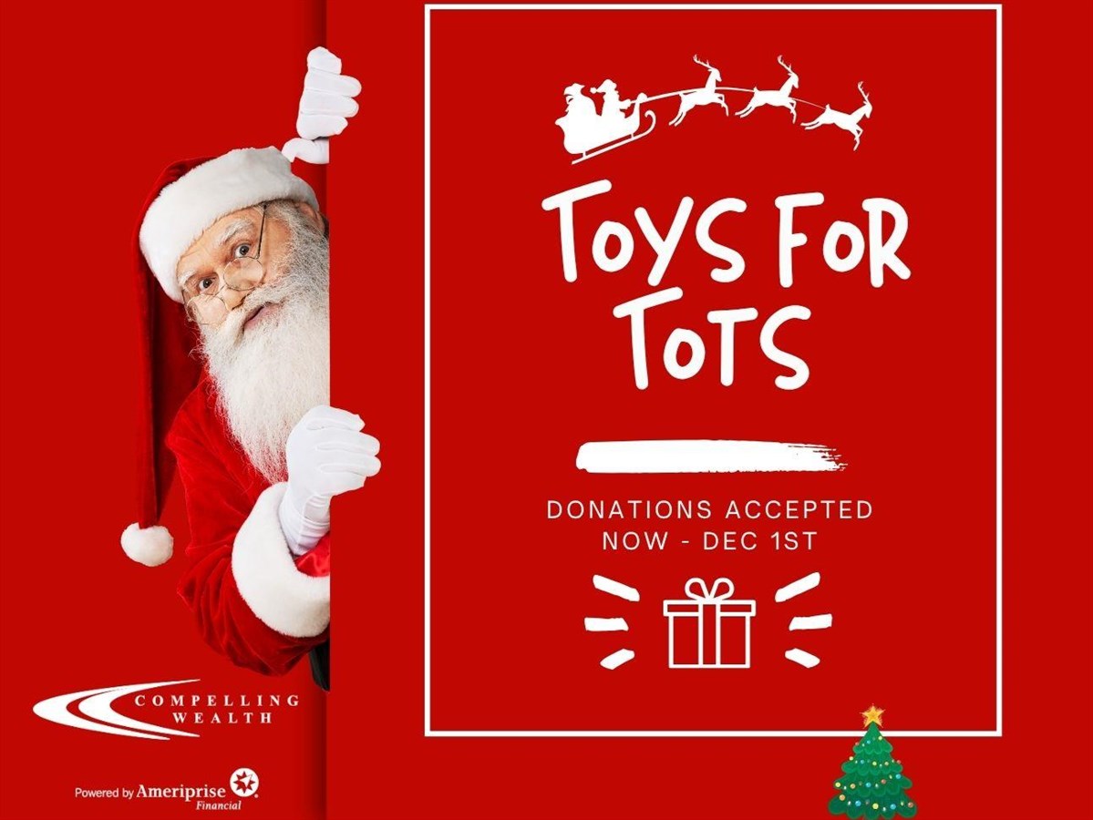 Toys for Tots Date: Monday, December 1, 2025 Time: 9:00 AM - 4:00 PM CST Location: Compelling Wealth Advisors, 2601 W Beltline Hwy, Ste 104, Madison, WI 53713 Hosted By: Compelling Wealth Advisors, a private wealth advisory practice of Ameriprise Financial Services, LLC Weare proud to support Toys for Tots this holiday season! We are accepting new, unwrapped toys for donation to Toys for Tots now through December 1st! For more information: call us at 608.819.0500 or email us at compellingwealth@ampf.com Share Email Text message Facebook LinkedIn X Add to Calendar Google Calendar Yahoo! Calendar