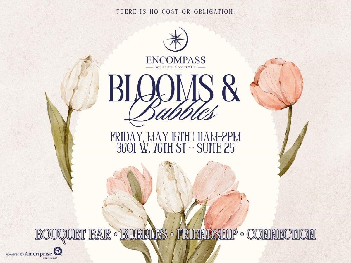 Blooms & Bubbles is a relaxed, bring‑a‑friend spring social hosted by Encompass Wealth Advisors. Guests are invited to stop by for light pastries, a refreshing drink, and time at our bouquet bar to create their own floral arrangement. It’s a casual, midday drop‑in event designed to welcome spring, spark connection, and enjoy good company.