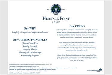 At Heritage Point Group our commitment is to simplify financial advice, making it empowering and collaborative. We are driven to inspire confidence in your financial future, so you can focus on what matters most - your family and your dreams.