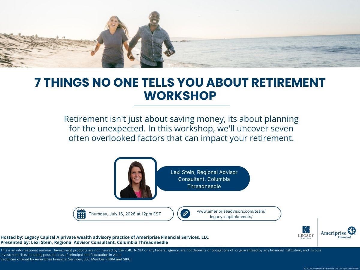 Retirement isn't just about saving money; it's about planning for the unexpected. In this workshop, we'll uncover seven often overlooked factors that can impact your retirement.