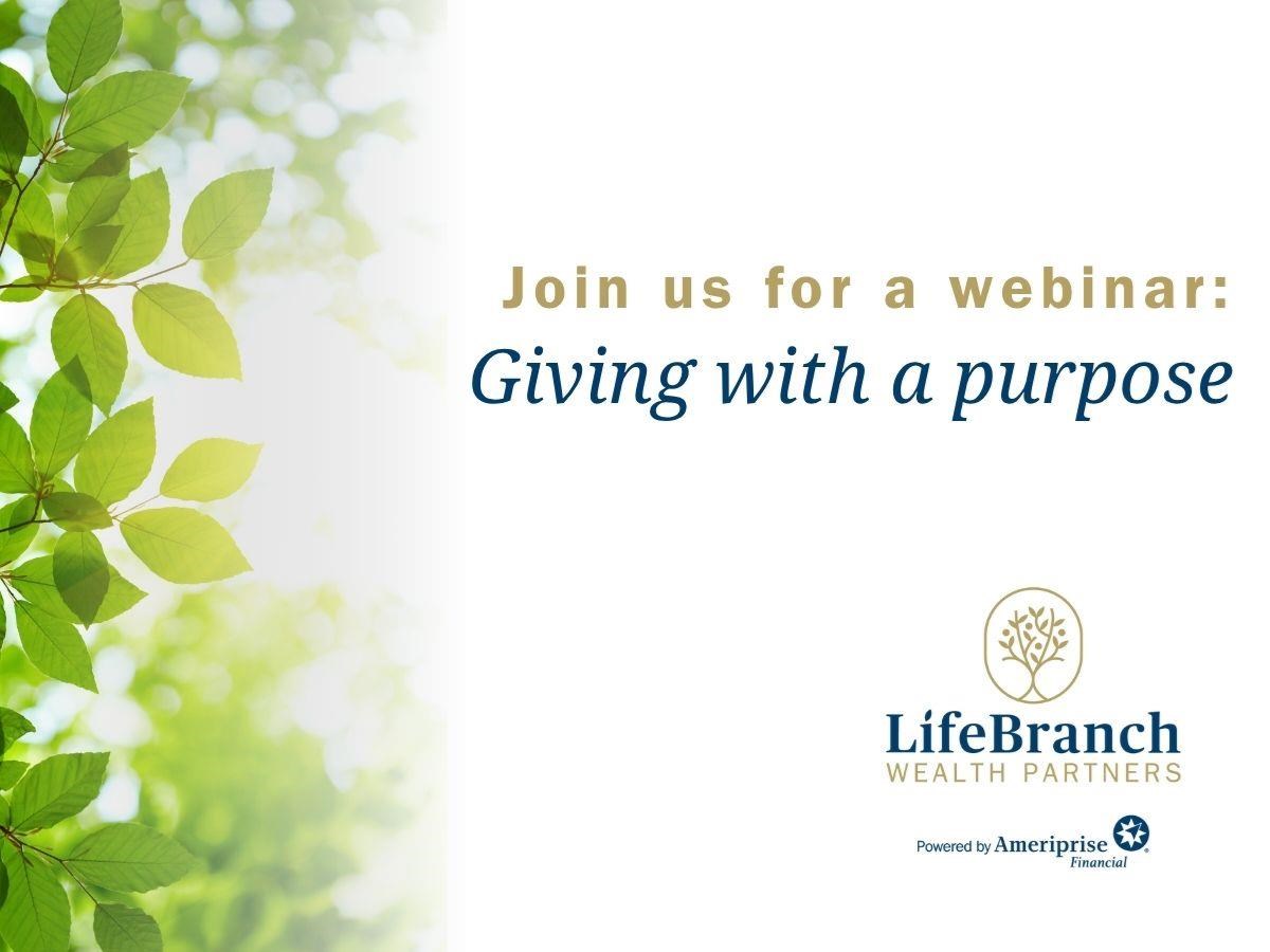 Giving with a purpose Date: Tuesday, November 25, 2025 Time: 12:00 PM - 1:00 PM CST You must RSVP to receive access credentials for this event or seminar. Presented By: Morgan Nichols and Kelly Bays, Private Wealth Advisors Hosted By: LifeBranch Wealth Partners, a private wealth advisory practice of Ameriprise Financial Services, LLC As the season of giving approaches, we invite you to a special online event that’s all about making your generosity go further. Whether you’ve been giving for years or are exploring new ways to support causes close to your heart, this webinar is designed with you in mind. We will also be discussing how the One Big Beautiful Bill Act has changed tax benefits for charitable giving! Join us for an uplifting and informative session where we’ll explore how charitable gifting can be both meaningful and financially smart. Please RSVP by Monday, November 24th. To reserve a spot: call us at 817.488.0905 or email us at lifebranchwealth@ampf.com Share Email Text message Facebook LinkedIn X Add to Calendar Google Calendar Yahoo! Calendar This is an informational seminar. There is no cost or obligation.Ameriprise Financial and its affiliates do not offer tax or legal advice. Consumers should consult with their tax advisor or attorney regarding their specific situation. Investment products are not insured by the FDIC, NCUA or any federal agency, are not deposits or obligations of, or guaranteed by any financial institution, and involve investment risks including possible loss of principal and fluctuation in value. Securities offered by Ameripirse Financial Services, LLC. Member FINRA and SIPC. © 2025 Ameriprise Financial, Inc. All rights reserved.