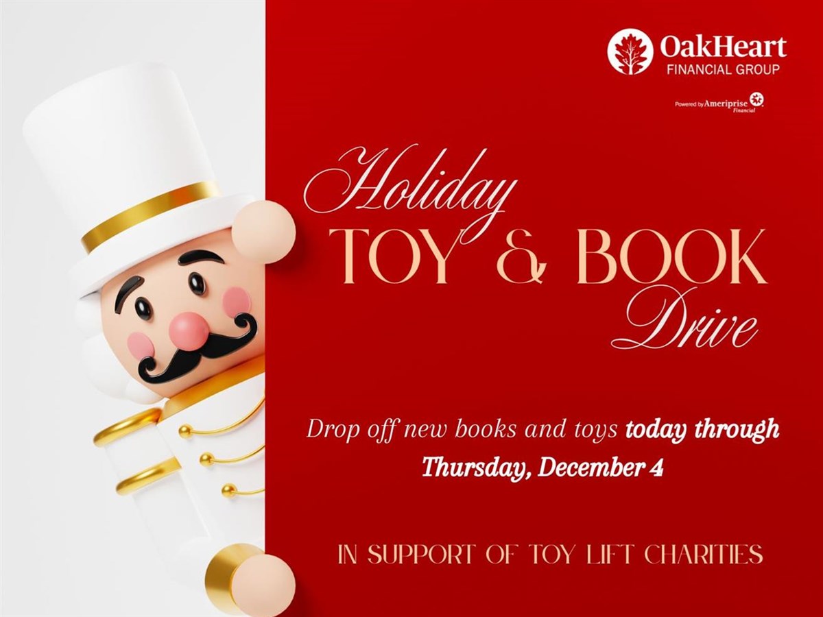 Holiday Toy and Book Drive Date: Monday, November 3, 2025 Time: 8:30 AM - 5:00 PM EST Location: OakHeart Financial Group, 941 Glenwood Station Lane, Ste 203, Charlottesville, VA 22901 Hosted By: OakHeart Financial Group, a private wealth advisory practice of Ameriprise Financial Services, LLC. We're proud to announce OakHeart Financial Group is partnering again with Toy Lift Charities this holiday season for our annual toy and book collection.Toy Lift Charities in an entirely volunteer run organization that supports families with holiday gifting for children ages birth to 8th grade residing in Charlottesville, Albemarle, Buckingham, Fluvanna or Nelson County.If you would like to donate a new, unwrapped toy or book, we will be accepting donations in our Charlottesville office, Monday, November 3rd through Thursday, December 4th. For more information: call us at 434.220.4671 or email us at oakheartfinancialgroup@ampf.com Share Email Text message Facebook LinkedIn X Add to Calendar Google Calendar Yahoo! Calendar There is no cost or obligation. Toy Lift Charities is not affiliated with Ameriprise Financial.