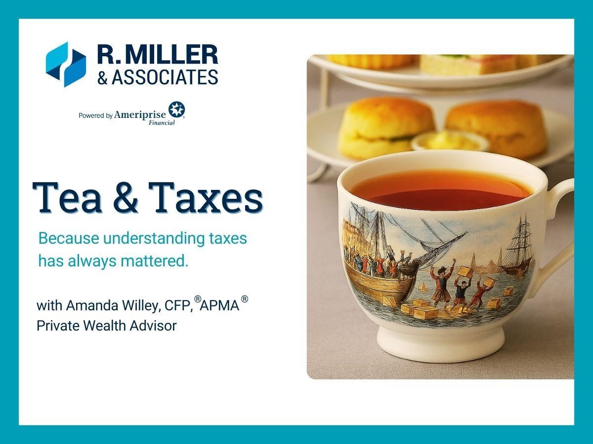 Tea & Taxes: How new tax law changes may impact you Date: Sunday, March 29, 2026 Time: 2:00 PM - 5:00 PM EDT Location: Vintage Tea & Cake Company, 21 Muzzey St. , Lexington, MA 02421 Presented By: Amanda Willey, CFP®, APMA®, Private Wealth Advisor Hosted By: R. Miller & Associates, a private wealth advisory practice of Ameriprise Financial LLC Join Amanda Willey for an engaging conversation over tea and light refreshments to discuss what has changed with the recently enacted tax law, what it may mean for tax filers, parents, families, retirees and eligible workers, and how thoughtful guidance can help bring confidence and control to your financial life. It is a comfortable setting to ask questions, learn together and gain a little more clarity and confidence moving forward. To reserve a spot: call us at 617.607.3366 Ext. 250 or email us at christina.cobas@ampf.com RSVP Online Event registration Date: Time: Enter your information below to RSVP for this event. We will contact you via phone or email to confirm your registration. First Name Last Name Email Phone (optional) Comments/Questions/Special Needs for the event (optional) Ameriprise Financial understands that privacy and security are important to you. We will only use the information to send offers we believe are relevant to you and, if you become a client, to send you information about your accounts. Visit the Email Preferences page to change your email choices. Submit Your RSVP was not sent. Return to form Thank you for your interest in this Ameriprise Financial event. We will contact you shortly to confirm your registration. Please note: Your registration is not complete until you have received final confirmation. Share Email Text message Facebook LinkedIn X Add to Calendar Google Calendar Yahoo! Calendar Share Email Text message Facebook LinkedIn X Add to Calendar Google Calendar Yahoo! Calendar This is an informational event. There is no cost or obligation. The Compass is a trademark of Ameriprise Financial, Inc. Investment products are not insured by the FDIC, NCUA or any federal agency, are not deposits or obligations of, or guaranteed by any financial institution, and involve investment risks including possible loss of principal and fluctuation in value. Securities offered by Ameriprise Financial Services, LLC. Member FINRA and SIPC. © 2026 Ameriprise Financial, Inc. All rights reserved.