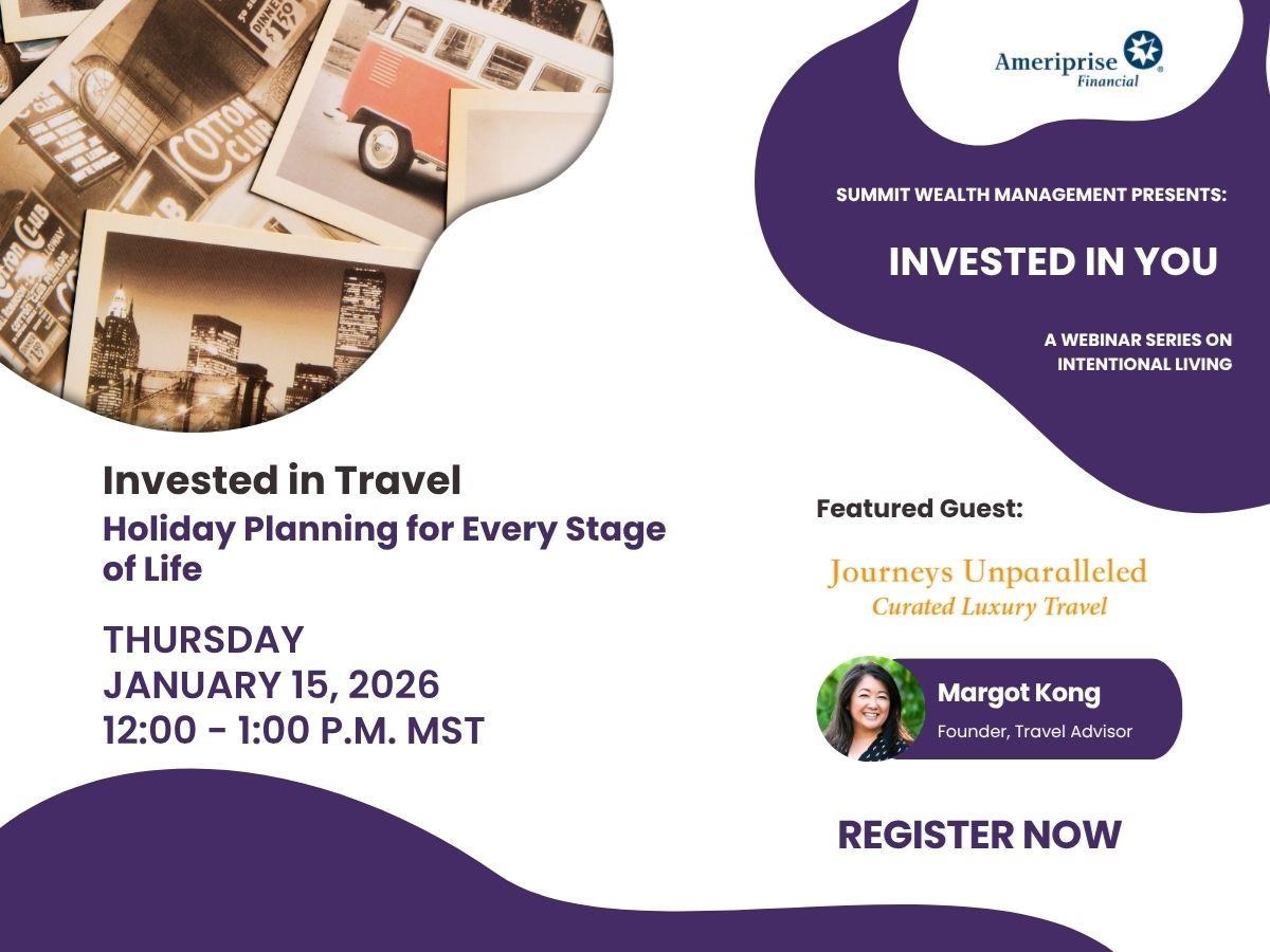 There is no cost or obligation.Summit Wealth Management is a private wealth advisory practice of Ameriprise Financial Services, LLC in Greenwood Village, CO.Featured speaker is not affiliated with Ameriprise Financial.Securities offered by Ameriprise Financial Services, LLC. Member FINRA and SIPC.©2025 Ameriprise Financial, Inc. All rights reserved. 8488275ACMR1025